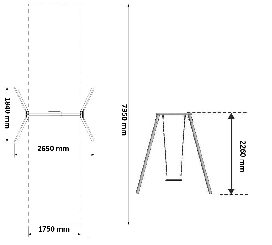 1116.226 Kiigeraam 1-kohaline (metall)